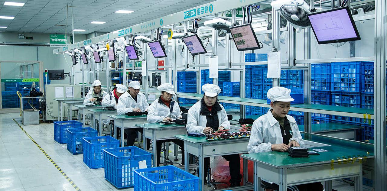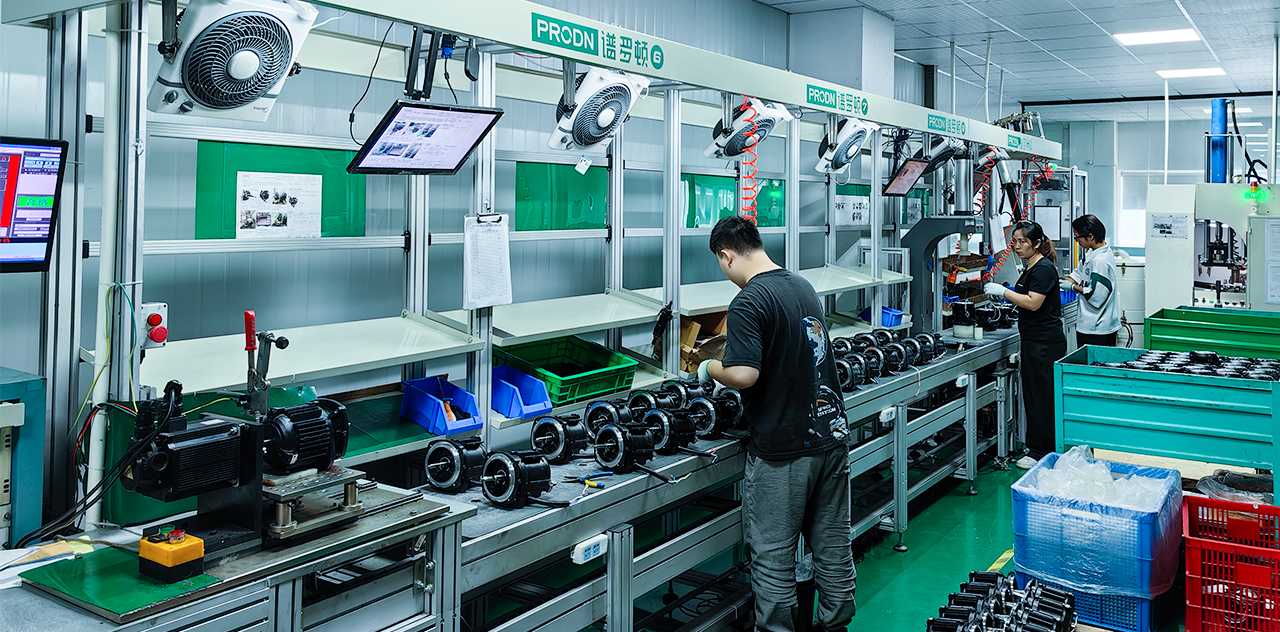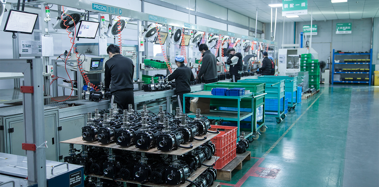 譜羅頓廠房總占地面積約107畝,擁有多條變頻控制器產線、永磁同步電機產線、傳感器產線、水泵裝配產線。